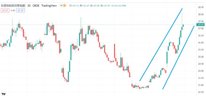 此外,VIX 恐慌指数大涨 14% 至 27.27 点。该指数由芝加哥期权期货交易所于 1993 年推出,是衡量市场风险和投资者恐慌度的指标指数。