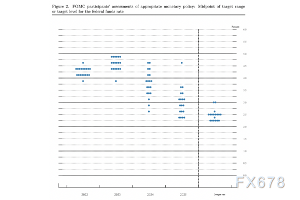 对年底联邦基金利率水平的预测暗示,美联储在2022年剩下的两次政策会议上将再加息125个基点,这一水平意味着将再进行一次75个基点的加息。