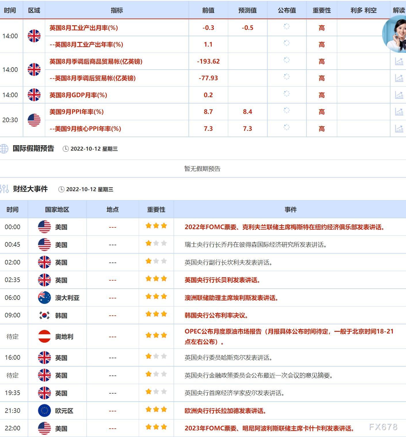 ③周三(10月12日)关键词:美国9月PPI,英国央行行长贝利
