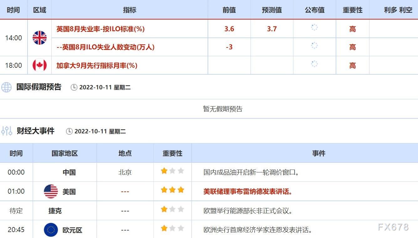 10月12日,英国央行行长贝利将发表讲话,投资者需关注他的最新立场。