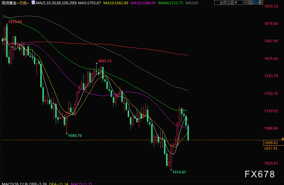 独立分析师Ross Norman表示,“我们再次回到1680美元的水平,短期内黄金仍将面临一些下行压力,”投资者关注将于本周稍晚出炉的美国关键通胀数据。