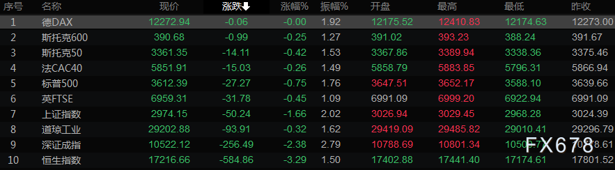 美国股市周一下跌,纳斯达克指数创下2020年7月以来的最低收盘点位,因投资者担心利率上升的影响。