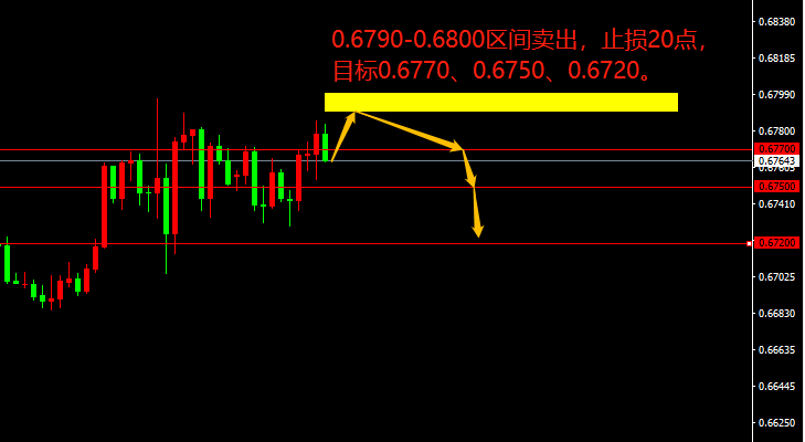 0.6790-0.6800区间卖出,止损20点,目标0.6770、0.6750、0.6720。