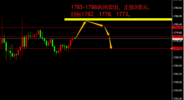 1785-1786区间卖出,止损3美元,目标1782、1778、1773。