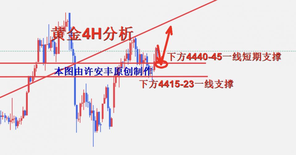 黄金昨天探底回升,并且日线收了一个标准的锤子蜡烛形态,这是一个企稳看涨信号,今天早间最高触及到了4484附近,目前上方4490-4500区间存在压力,需关注能否有效突破。而下方短期支撑则维持于4440-45附近区域,下方4415-23一线支撑,需等待方向选择,也有可能是在等待非农数据公布后的突破,而上方的压力则维持于4490-4500一线,目前总体大区间还是偏向于震荡,维持于4415-4490之间,区间内可以考虑高抛低吸,切勿追涨杀跌,严格控制风险!市场在变化我们就应该跟随它变化,市场才是最好的风向标,黄金日线底到了形态的支撑,形态显示它是一个阶段性的上冲,如果这波上冲可以重新破4500就会再次刷新高,黄金今天的空头先退下,今天还是非农就业数据公布的时间,如果黄金周线可以企稳再次见红,那么下周的黄金多头将继续上扬。