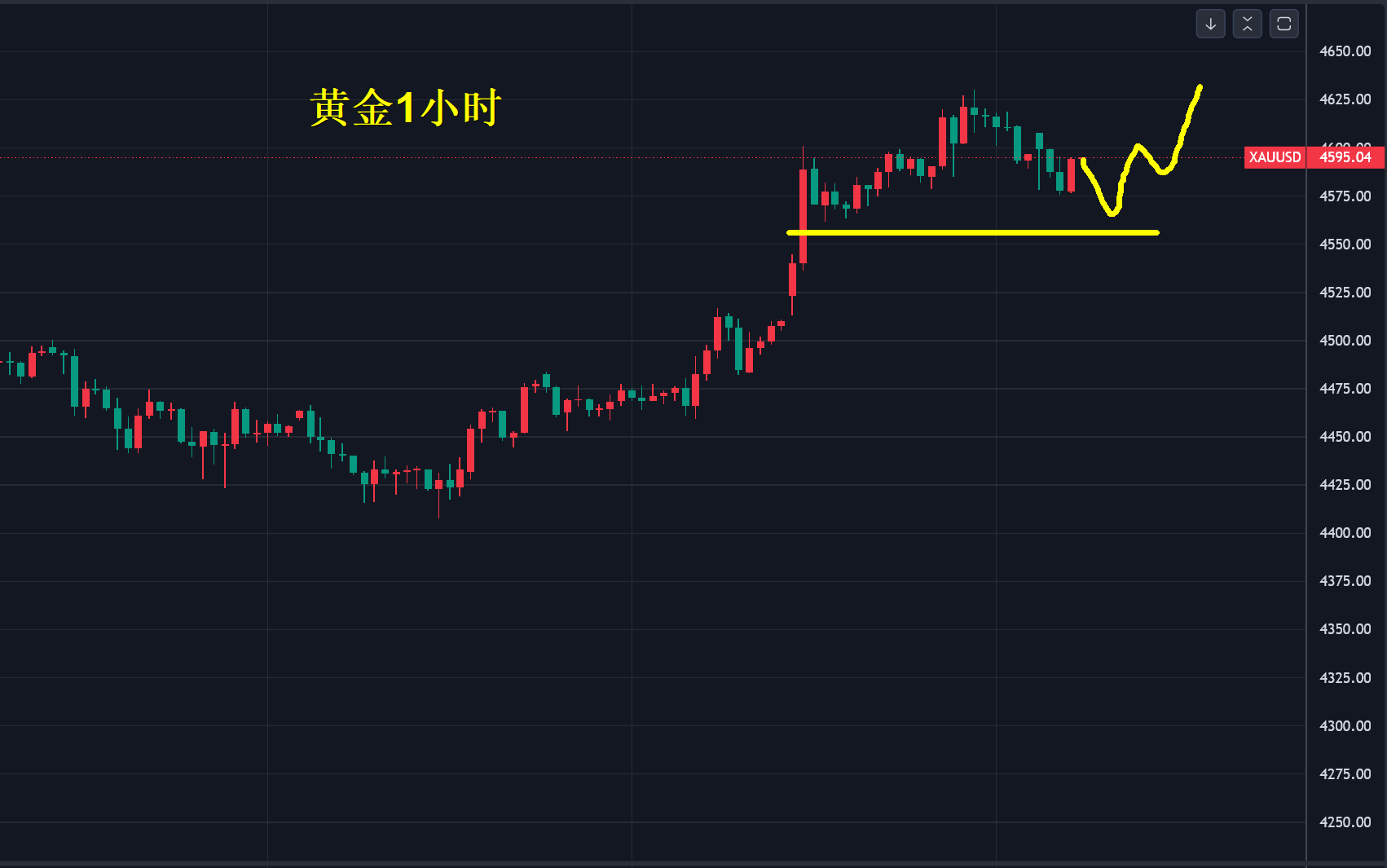崩溃不是孤独,是失去自我,被外界牵着走,欲望,冲动,利益,行情就像拽你的绳子,越被牵制越失去自我。向内求,不是往里钻,是为了“站住”不被外面的诱惑牵制,给自己的反应加一套“过滤器”。以前是:外界刺激—本能应激—行动——结果。现在要多一个环节:外界刺激—站住(观察)—过滤—行动—结果。这里里的“站住”不需要每次都对,只要它出现,你的思考结构就变了,不再完全被外界(行情)牵着走。你不是情绪本欲望与冲动本身,更不是分裂出来“观察者角色”,而是那个能回到位置的存在,站住,看见,选择,站住不是逃离行情和生活,也不是钻进内心深处,而是“回到“驾驶位”。试着让自己做选择前“站住”思考3秒,深呼吸一次,你会明显感到舒服,因为你从原来“被动被推”变成了“主动选择”。下单之前,交易之时中间“停留”几秒,你的内心会感受到:我不是被迫的,不是被牵制的,而是参与过决定。站住了,但还是被牵着走,这很正常,因为旧模式不是一次能断掉,你更不需要每次都赢(站住),而是站住的次数越来越多,被外界冲走的越来越少。一个更深的理解,外界发生的一切(行情,信息,诱惑,别人赚钱)过去像命令,你必须回应,现在训练你的是外界只是信息,不是命令,这就是向内看的本质,记住不是往里钻,是回到主权,站住后过滤完再行动。当你懂得决定前的“站住”,下一步每次只做一个动作就够:交易的时候不满足条件不下单,人际关系先复述再回应,手机每次拿起来只做一件事。不再用因果看行情,而是站在结构层,因果会错,结构不会。说一下今天黄金行情:周一受避险情绪推动黄金跳空高开上涨至4630美元,连续两个周末都被特朗普点燃市场情绪,他没有成为竞选时承诺的地缘风险结束者,反而是地缘风险发起者,对于黄金的上涨功不可没。另外,美联储主席鲍威尔收到刑事传票,眼看着就要结束任期享受老年生活了,却成了美国历史上美联储主席在任期间被刑事指控的特例,双重作用下黄金市场开启疯涨模式,而突破4550-60美元之后这里成了周一回落确认关键支撑,也是我们昨晚内部直播强调做多的区域。