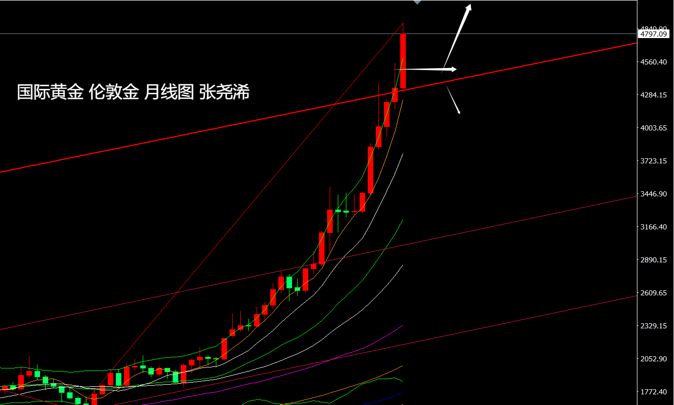 反之,如本月再度收取倒垂至趋势线之内,则需留意后市有再度展开较久的横盘调整或较大回调风险,但目前来看概率仍非常小。