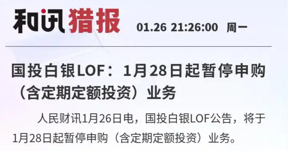 1月28日起白银LOF暂停申购,传递什么信号?