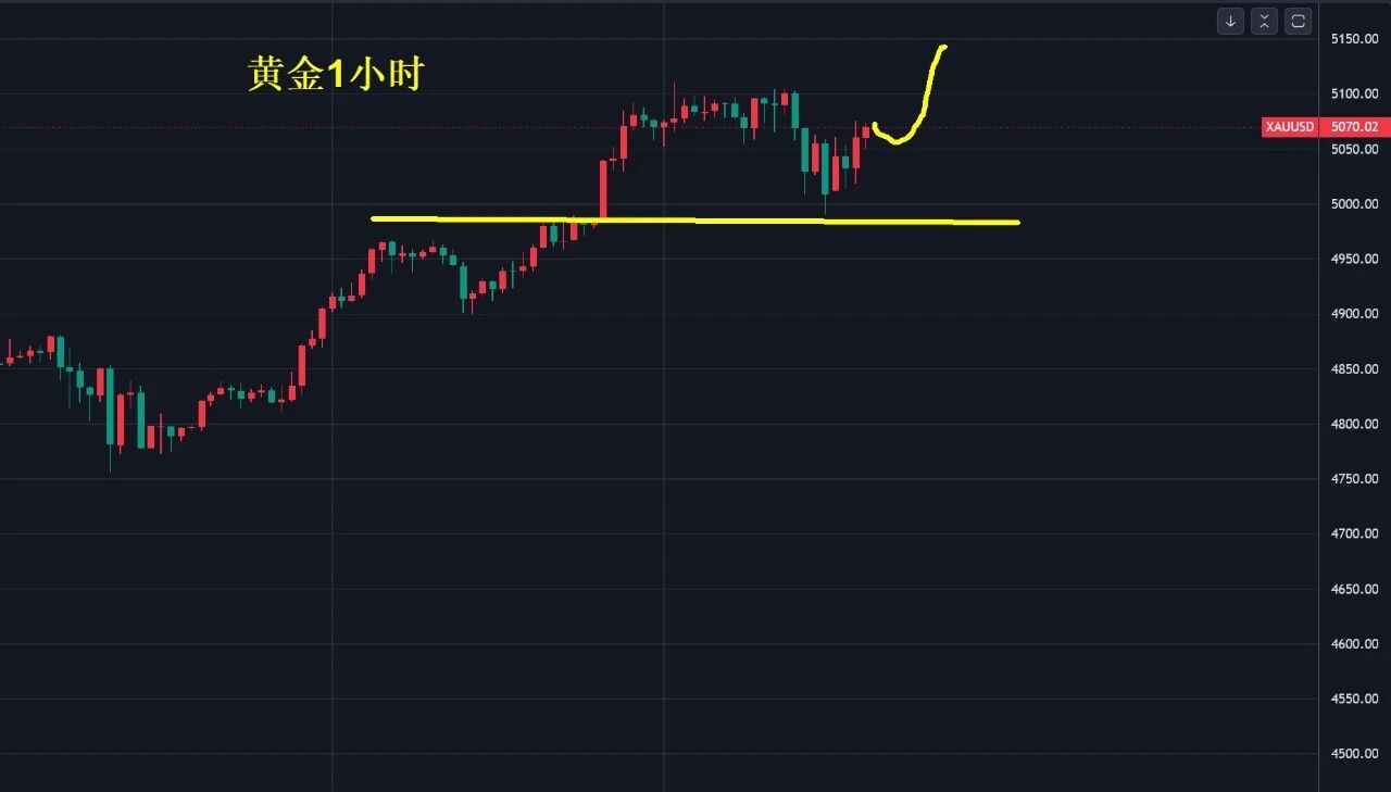 周一金价跳空高开至5090美元之上,白银抵达110美元,金银价格没有最高只有更高,一次次打破市场认知上限,欧美盘黄金表现相比白银有些弱,金价完美回踩顶底转换5000美元.