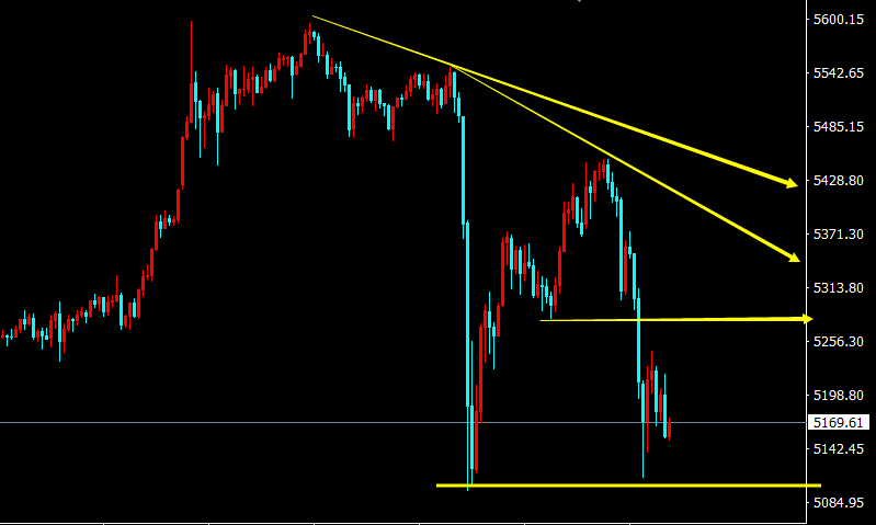 黄金,飞流直下三千尺,疑是银河落九天,昨日早间多头冲击5600一线,而晚间美盘突然闪崩,以迅雷不及掩耳之势,一小时快速回落400个点,5分钟回落212个点,可谓是惊心动魄,也让我们大开眼界,日内黄金亦是如此凶猛,早间最高到达5450附近,最低又快速回落于5111附近,短线内的波动一分钟都是几十美金的上下,而对于短线操作难度极大,目前技术面上也是大区间内的震荡,并无良好的操作环境,在如此的剧烈波动之下,多空进场十几美金的止损可能就是被秒杀,这种时候贸然进场,好比在狂风暴雨中行船,稍有不慎可能就翻船,无论追涨还是杀跌,就像刀尖上跳舞,目前我们要做的就是耐心等待市场情绪降温,等波动回归理性,趋势走出清晰脉络,我们再进场布局,有时候,在投资的赛道上,要学会等得起,远比急着冲更能守住底气,有时候观望也是等于盈利,坐山观虎斗也是一种乐趣。