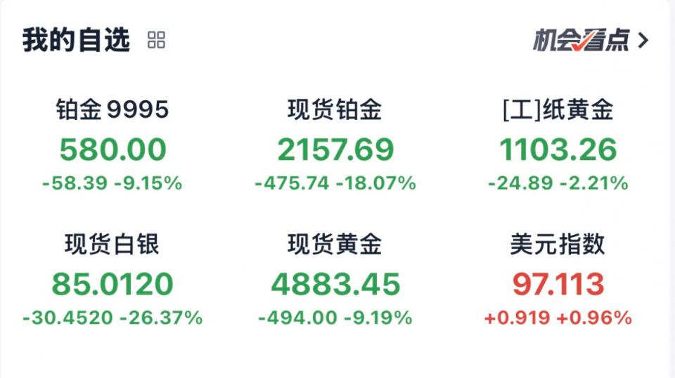 一夜之间金银遭遇滑铁卢,白银单日跌幅超30%+,黄金跌幅达10%+,短短一个月见证了多头的疯狂,经历了空头的凶猛。