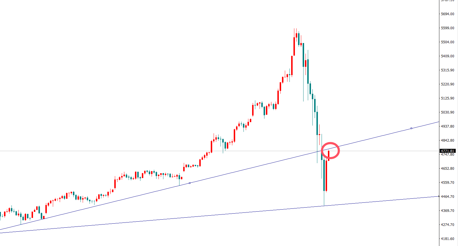 上周五到现在,黄金空头进入加速下行阶段。午后在4400关口获得支撑后,行情出现报复性反弹,现在4783一带仍是比较关键压力。建议反弹4783继续进空,目标继续下看4700-4600!!!