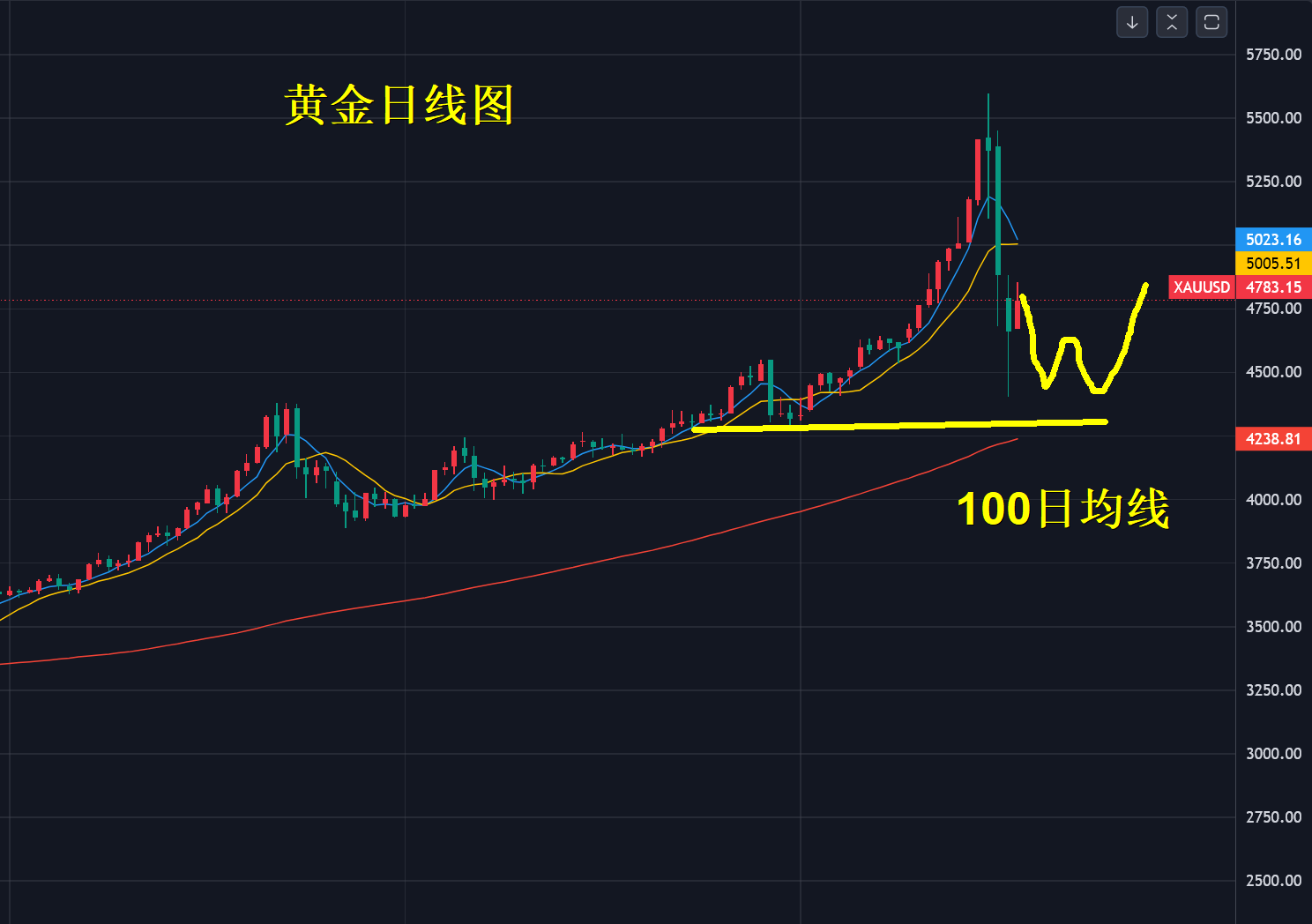 黄金下跌有没有结束?到底能跌到多少,不是看支撑位在哪,现在回头看4400美元是低点,后悔卖飞了,就像5600美元是高点一样,行情走出来才知道高低点,下跌结束重点是最后一次下跌前高点破位。