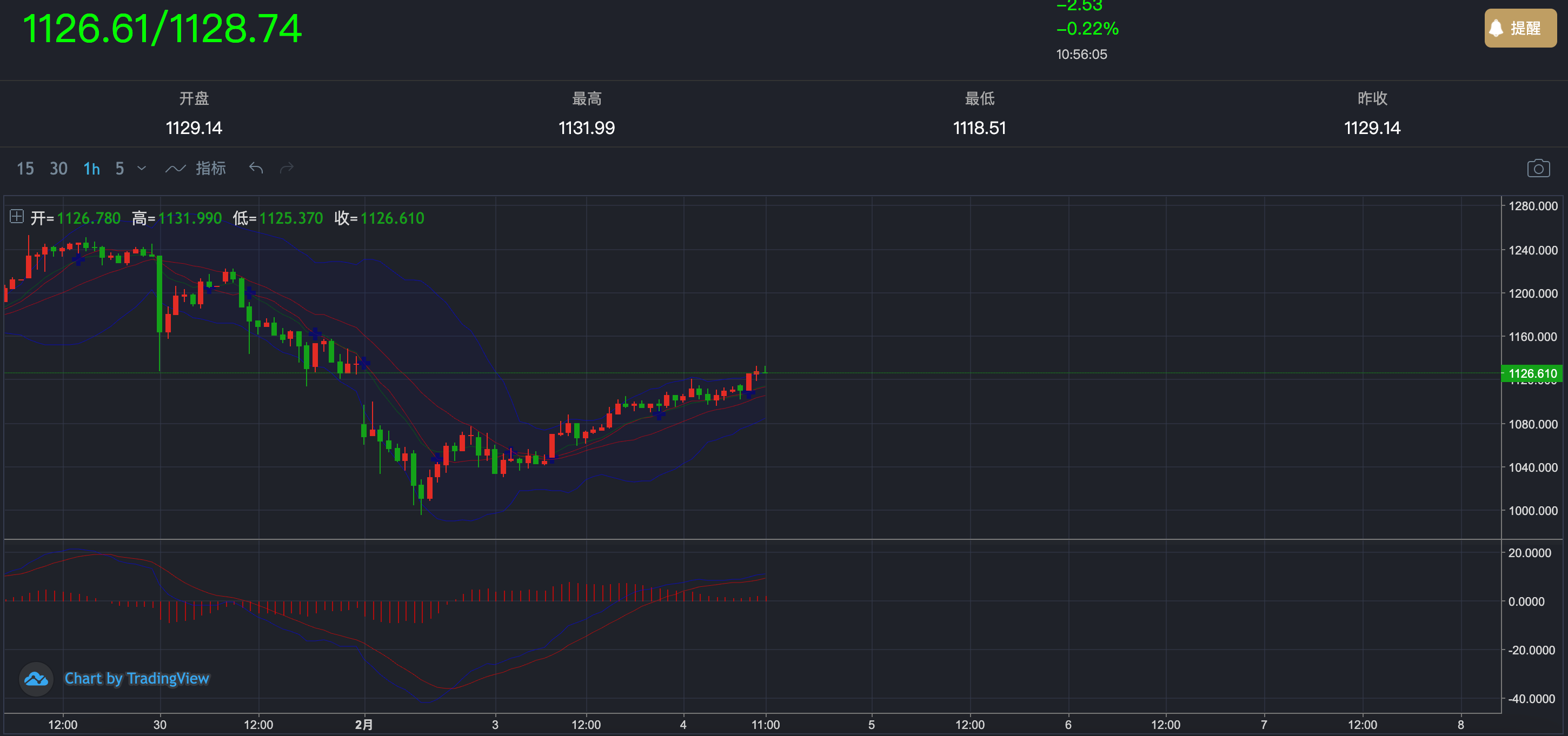 目前价格运行在1125–32区间,属于反弹中的上行整理阶段。