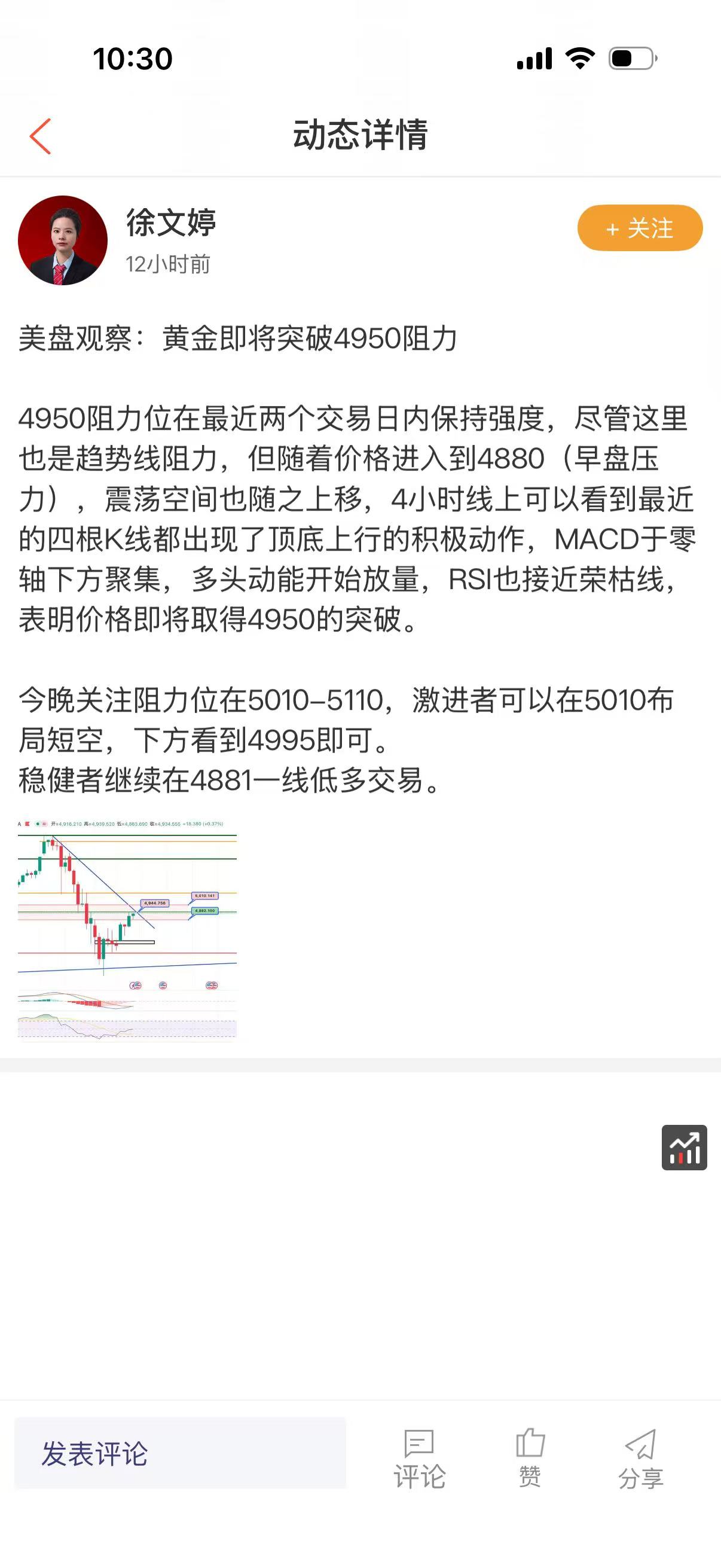 徐文婷:黄金如期取得突破,短线阻力关注5111