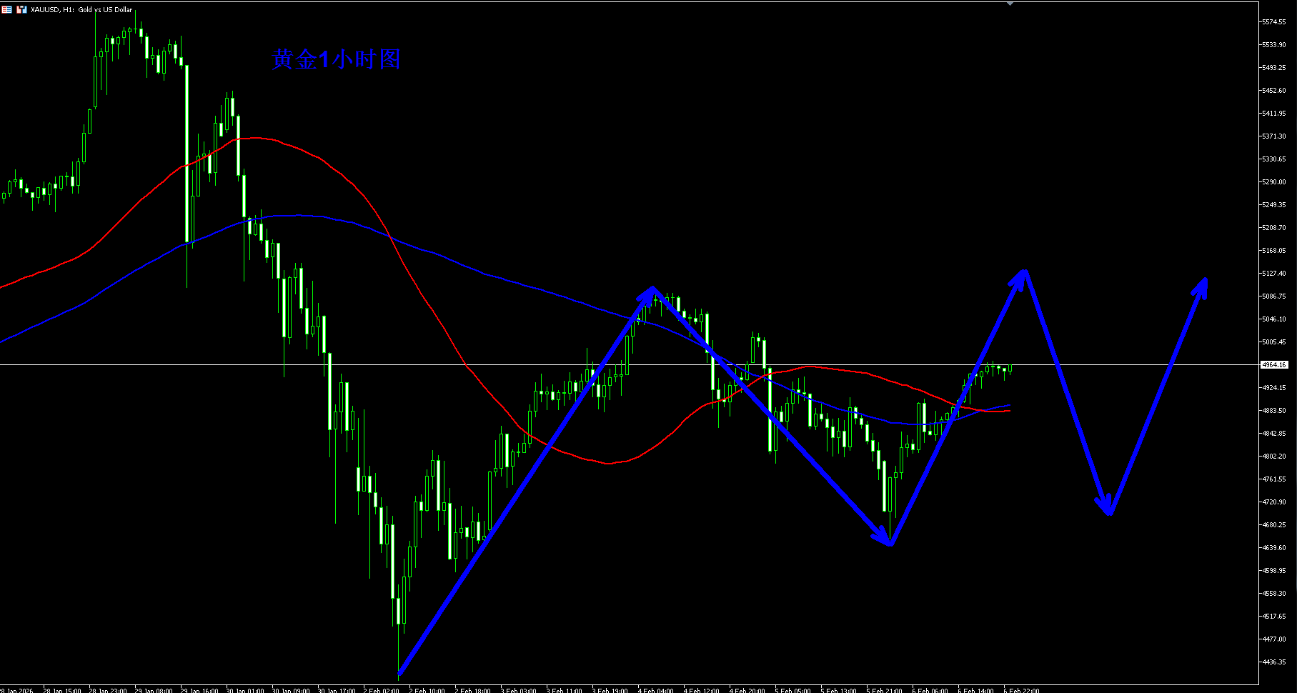 黄金1小时继续大区间震荡,黄金上方依然关注5100附近的阻力压制,下方关注4650一线的支撑,黄金大概率还将在这个区间持续震荡,直到有新的驱动事件或者数据来打破平衡,那么黄金才能走出震荡,然后突破之后开始新一轮的行情。