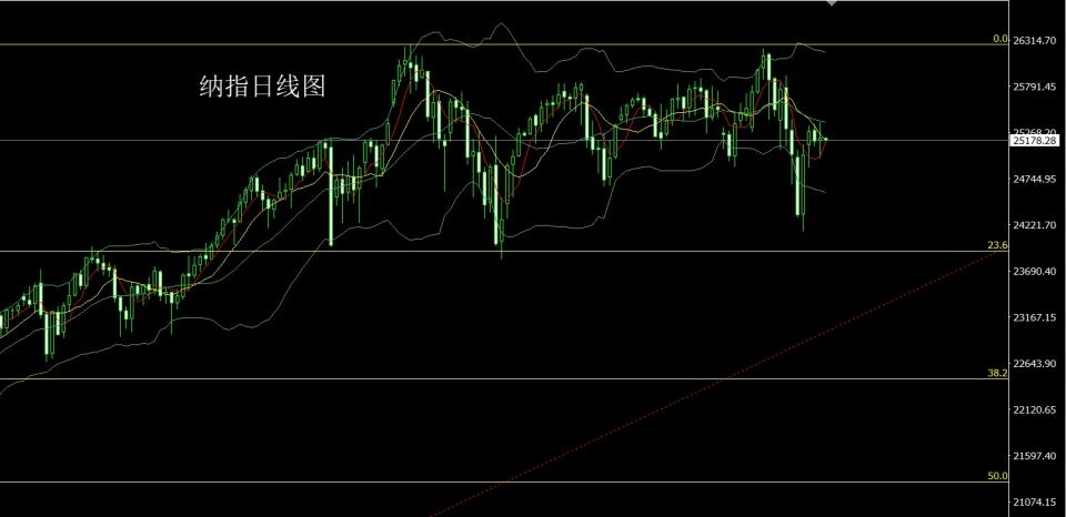 纳指市场昨日开盘在25175.08的位置后行情先回落给出25055.42的位置后行情拉升,日线最高触及到了25380.7的位置后行情回落,日线最低给到了25969.47的位置后尾盘拉升,日线最终收线在了25202.04的位置后,日线以一根上下影线等长的长脚十字星形态收线,而这样的形态收尾后,今日25000多止损24940,目标看25150和25300和25500和25600.