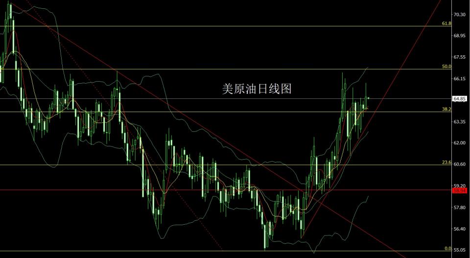 美原油:今日64.6多止损64.2,目标看65.2和65.85压力。