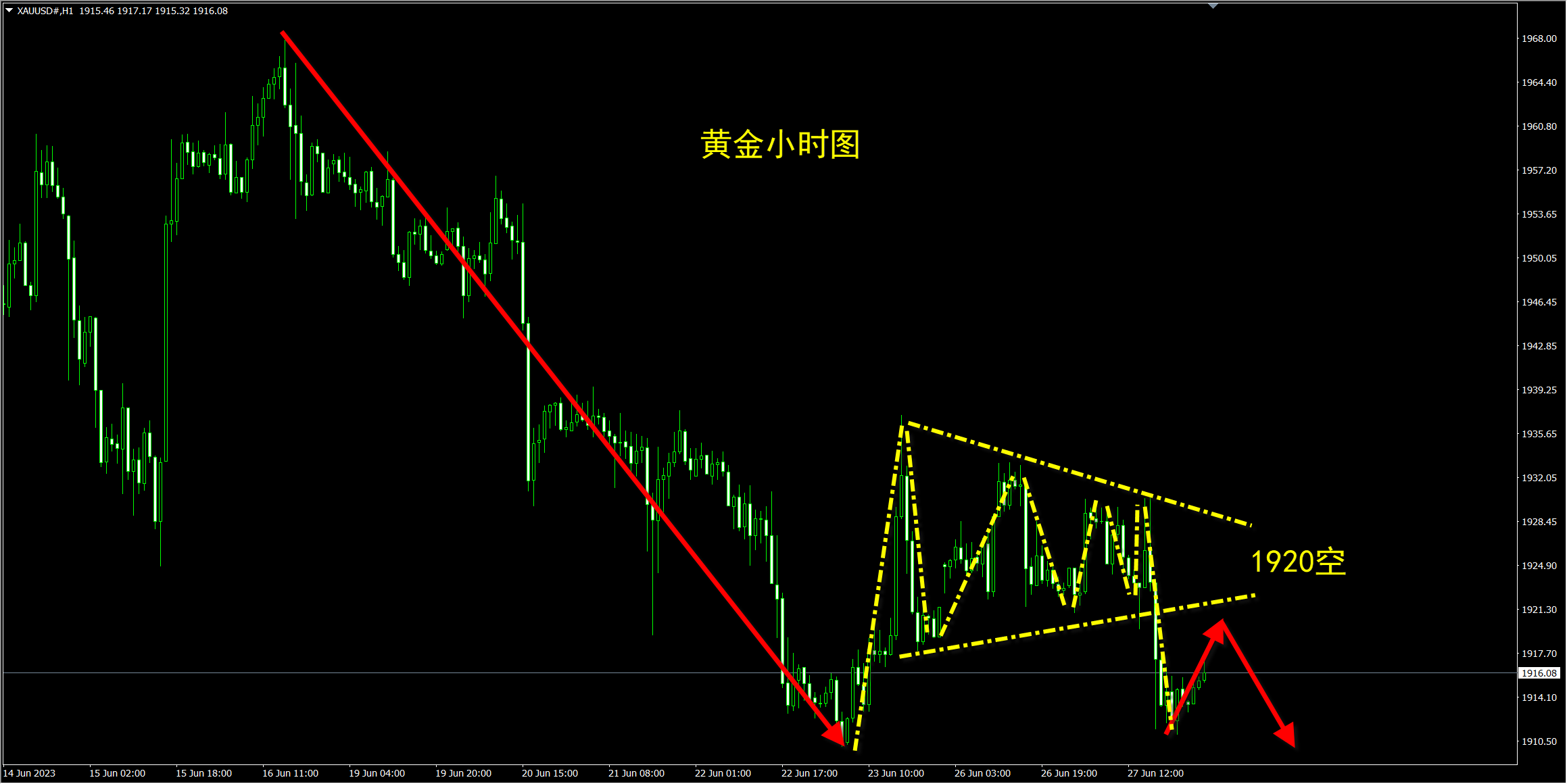 6.28黄金1922上方分批做空