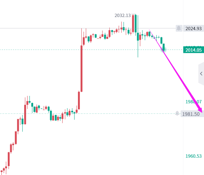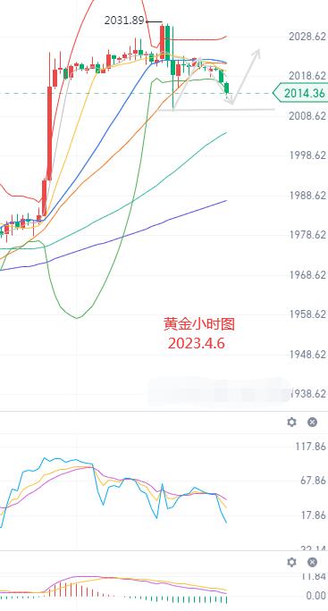 2020-2030的分批空单有效,目前行情最高2032后走跌。对于持仓最好的建议就是保持上方2030的空单,然后下方有参与的低位空选择获利离场,保持仓位的灵活性。需要注意的一点是小非农(ADP)数据公布是利多的,但是金价