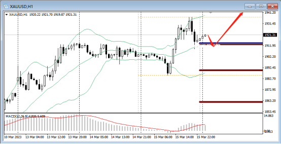 德璞资本:瑞士信贷暴雷,非美暴跌 黄金(日内) 大概率:于1913.00(P点)之上看涨(穆迪枢轴线) 小概率:于1913.00(P点)之下看跌 其他技术点评: MACD在0轴之上,代表多头意愿强,同时价格运行在布林带中轨