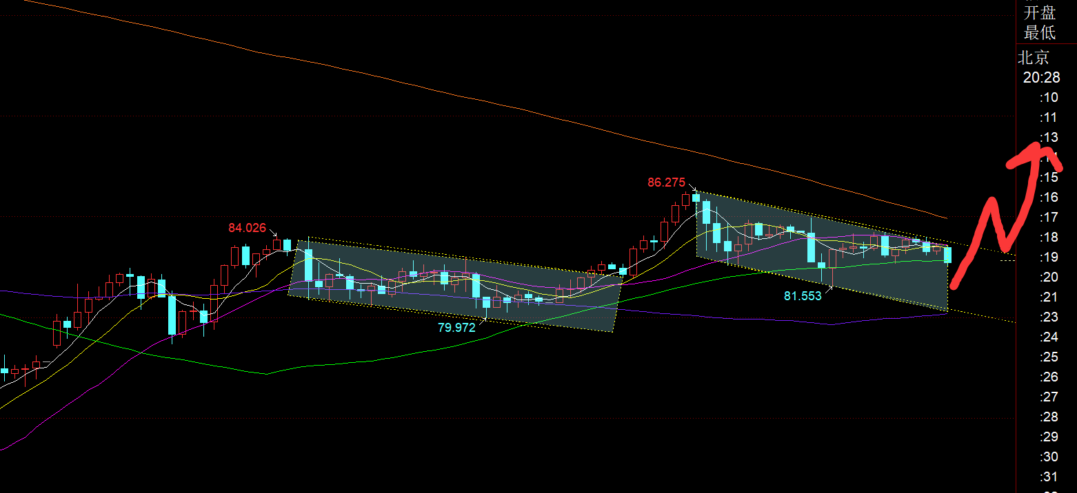 第二,白银方面:昨日终于发力上冲至86,前几日给出的80-82北上,也顺势减持;