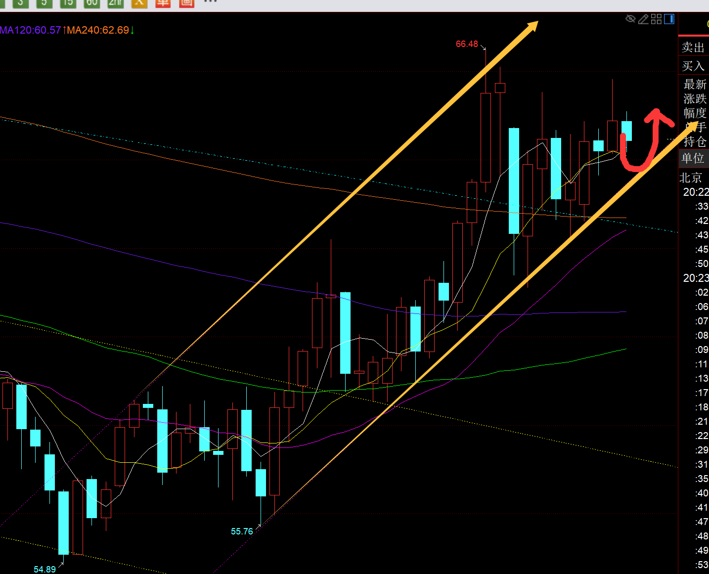 原油方面:还是这个黄色通道,它保持不破,就继续围绕下轨逢低北上,今日对应支撑上移63.6,触及继续北上看反弹,整体属于震荡,比较反复又墨迹,需耐心;