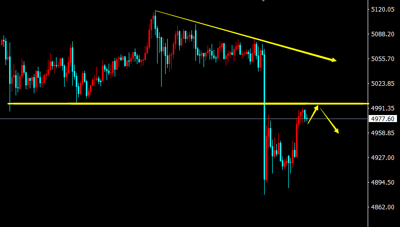 【周五操作】:黄金日内先反抽于5000-05附近做空,目标4950-4920附近,损5015.