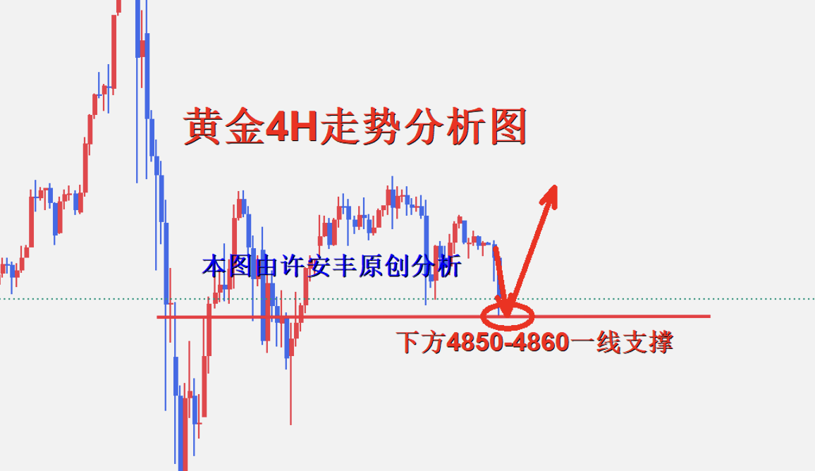 从4小时行情走势来看,上方关注4960-4990一线短期压制,下方关注4850-4858一线支撑情况,操作上以稳健操作为主,具体操作策略我会在盘中提示,及时关注。