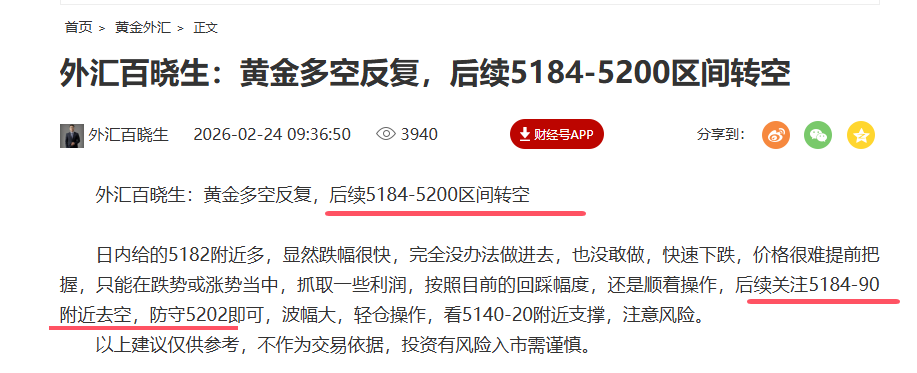 德璞资本外汇百晓生:5184-90空有所利润,后续回踩5171多