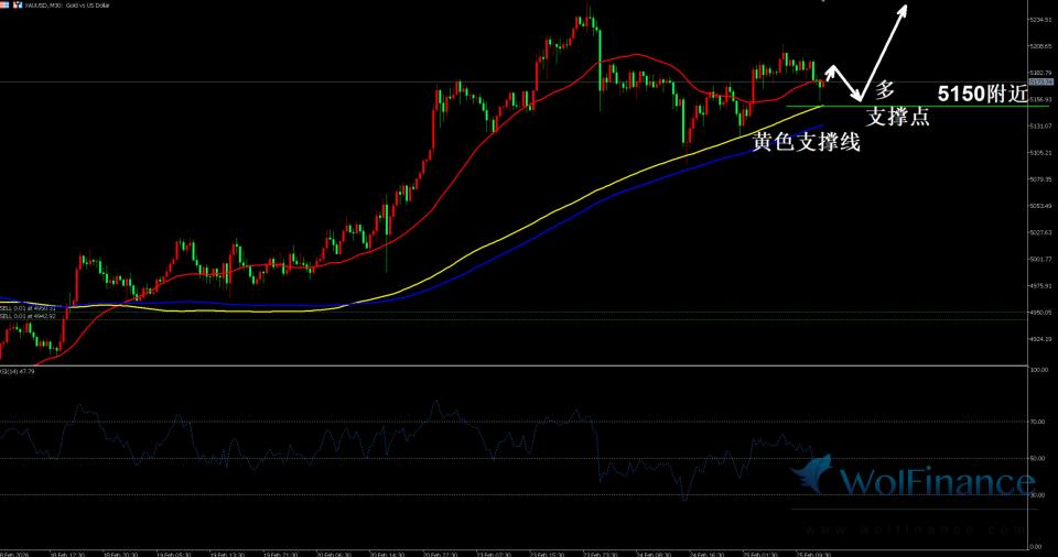 周三(2月25日)美盘前时段,黄金价格震荡回落,市场走低,目前金价美盘盘中价格短期支撑反弹,目前美盘可以进行短多操作,目前交投于5172附近,本周美元所承受的最主要压力,来自贸易政策的急剧演变。美国于近期正式实施10%的全球临时关税,白宫据报正寻求将税率进一步提升至15%,此举发生在最高法院裁定推翻特朗普对等关税政策之后。目前黄金三方面影响,1.美国伊朗局势紧张,2.美国增加关税的影响,3.美元和美国经济预期发展和影响,技术面反弹看涨,但是没有交易量行情处于震荡中。
