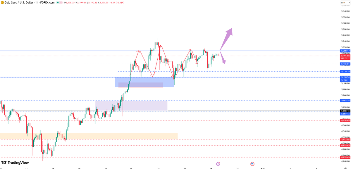 技术面显示,黄金在5175-5150美元区域构筑了双重支撑防线,其中5175为短期支撑,5150为中期关键支撑。预计该区域将有较强买盘承接,可考虑逢低布局。