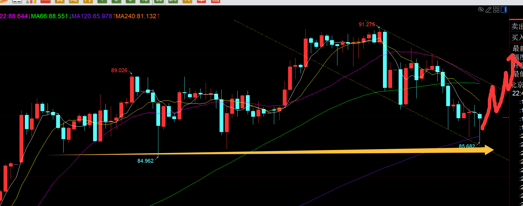 回顾昨日行情走势及出现的技术点: