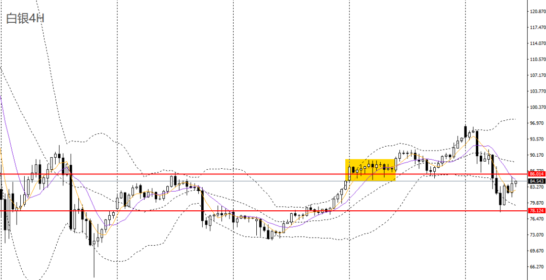 白银再度遭遇重挫,刺破日线布林中轨,日线RSI跌至50左右,4小时刺破关键支撑78后企稳,空单可暂时离场,稳健者建议保持观望。