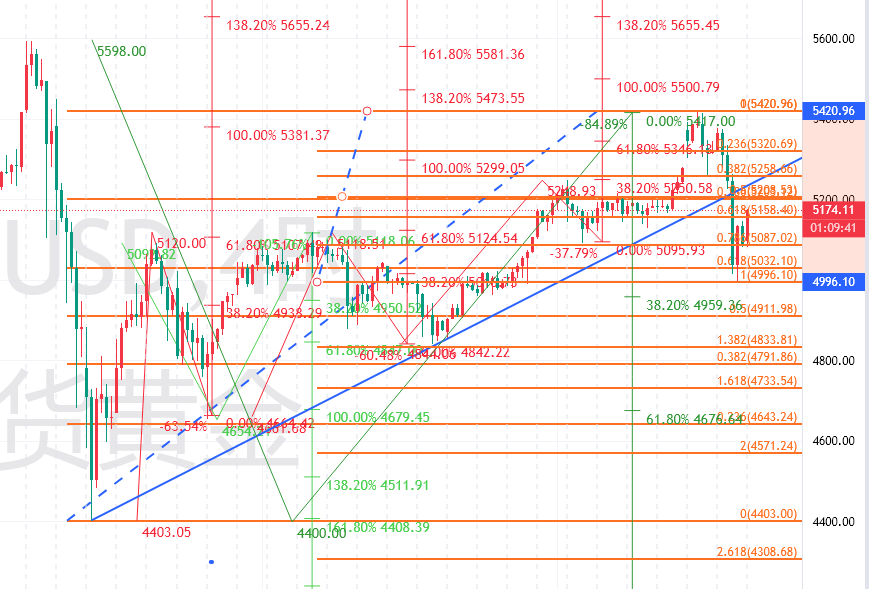 黄金,昨天暴跌后,预计今天震荡修正。看今天难以继续大跌,昨天低点5000美元大关(国内1130-25)已经是强支撑,短期5060-70区域支撑;接下来会跌向我们说的春节前低点4850--4900美元,但需要给市场时间。阻力今天第一短期重点5200-190美元区域,然后5250-60美元和5310-5300美元区域。