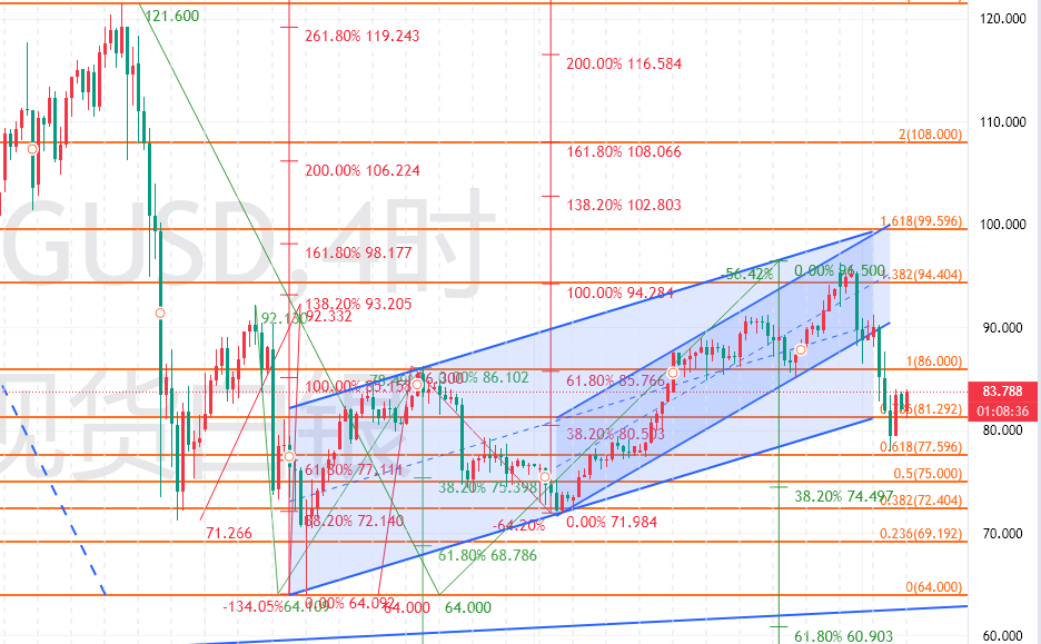 牛皮市或牛转熊不是短时间就能完成,回想一下白银去年开启单边大涨前,在50美元下方(严格来说30美元下方)反复折腾了几年;当然空头下跌,不会这么长时间,一年半载或几个月是有可能的。所以,接下来,白银还会有反复拉高反复打压,目的都是为了拉高出货。今天短期84-85美元阻力,重点是87美元和90-91美元,冲高做空为主;短期支撑80-81美元,重点是昨天低点77-77.5美元,然后75-74美元和70-71美元。