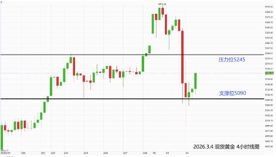 周二现货黄金下跌4.37%,收盘在5088.83美元。美汇指数一度涨至3个多月高点,美债收益率连两日走扬,此外因美以伊军事行动后,原油价格大幅走升,投资者开始担忧能源价格上行将再度抬高通胀、压缩美联储降息空间,造成黄金多单迅速获利了结。由于军事行动造成的避险情未仍未消散,但宏观经济环境短线对黄金不利,市场目前等待周五非农数据与失业率,以寻找美联储货币政策的线索。