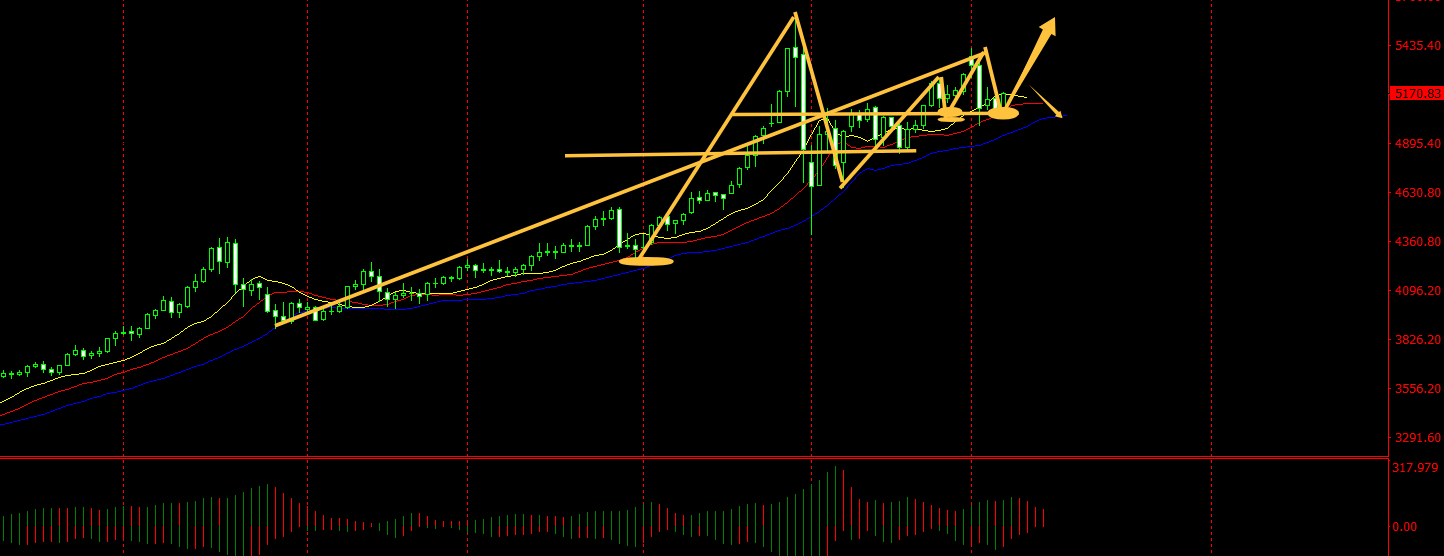 上周五美国非农数据,利好金银,让黄金转危为安,下方5000美元大关,死死的支撑住防守着,一刻都没有松懈。而上方分界5200,现在即是压力位也是多空分水岭,是下周多空争夺的关键。如果日线级别看不出来多空谁更占优,我们可以从长远的周线视角来看,多头的上行通道一直没有被破坏,所以低多成为每日必备,加上非农数据出炉就利多黄金,实盘5115大胆开多,直接收获15美金利润,后期还有五六十美金的上涨空间。大行情的操作上1/20的仓位即可,,下周操作还是低多为主,高空辅助,黄金价格运行至支撑5100,5110附近开干。