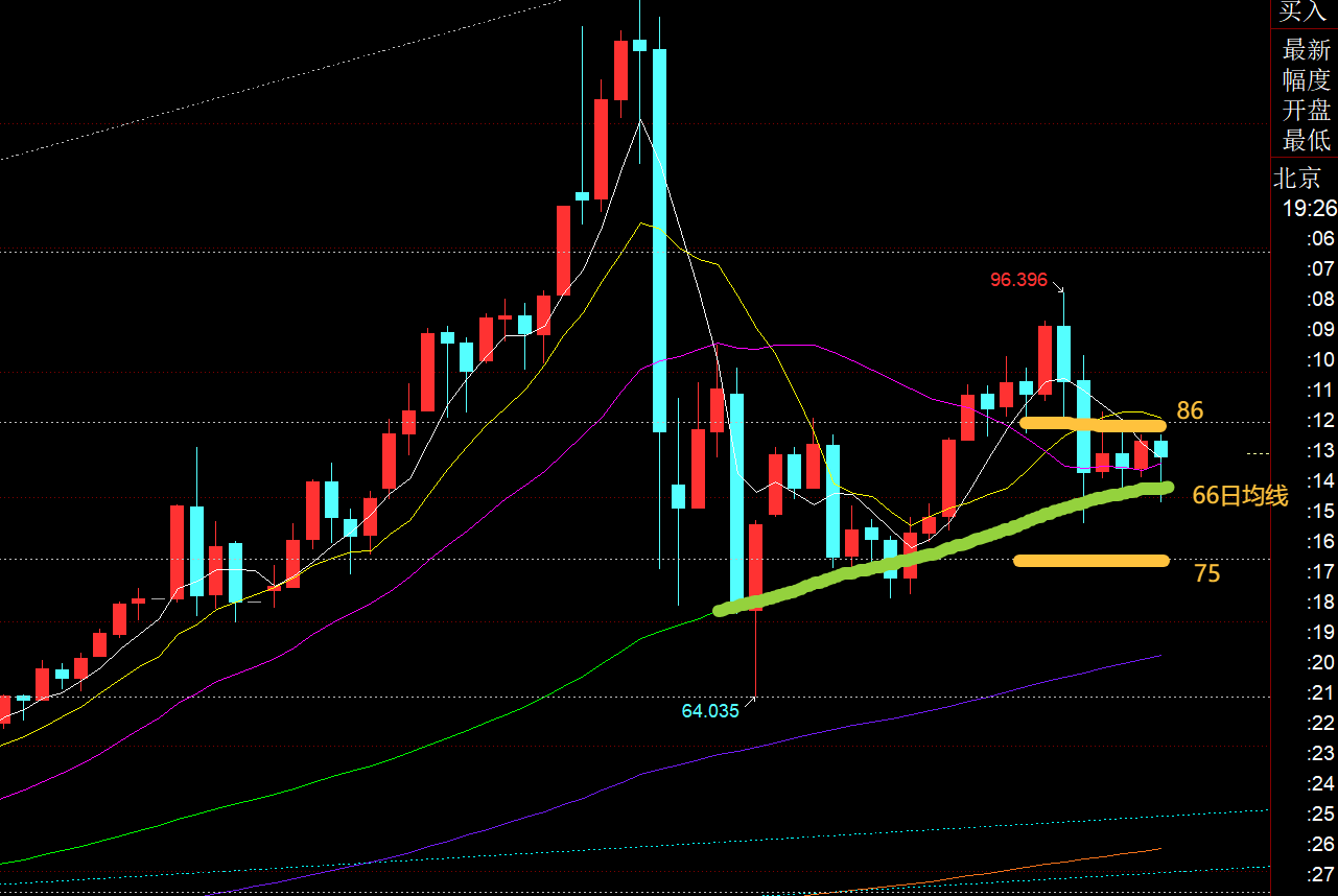 白银方面:从日线上图看,关键压力还是86一线分割,关键支撑75一线分割,而中间66日均线作为中轴支撑,卡在81-80位置,价格也一直徘徊支撑和阻力之间反复的整理; 今晚关注86-85阻力,支撑80-81,小范围留意它们震荡运行,也是探底拉升来对待;若小概率出现偏大的下挫,75之上也会很快企稳拉升;多头趋势并未改变,不用太慌,迟早会走高;