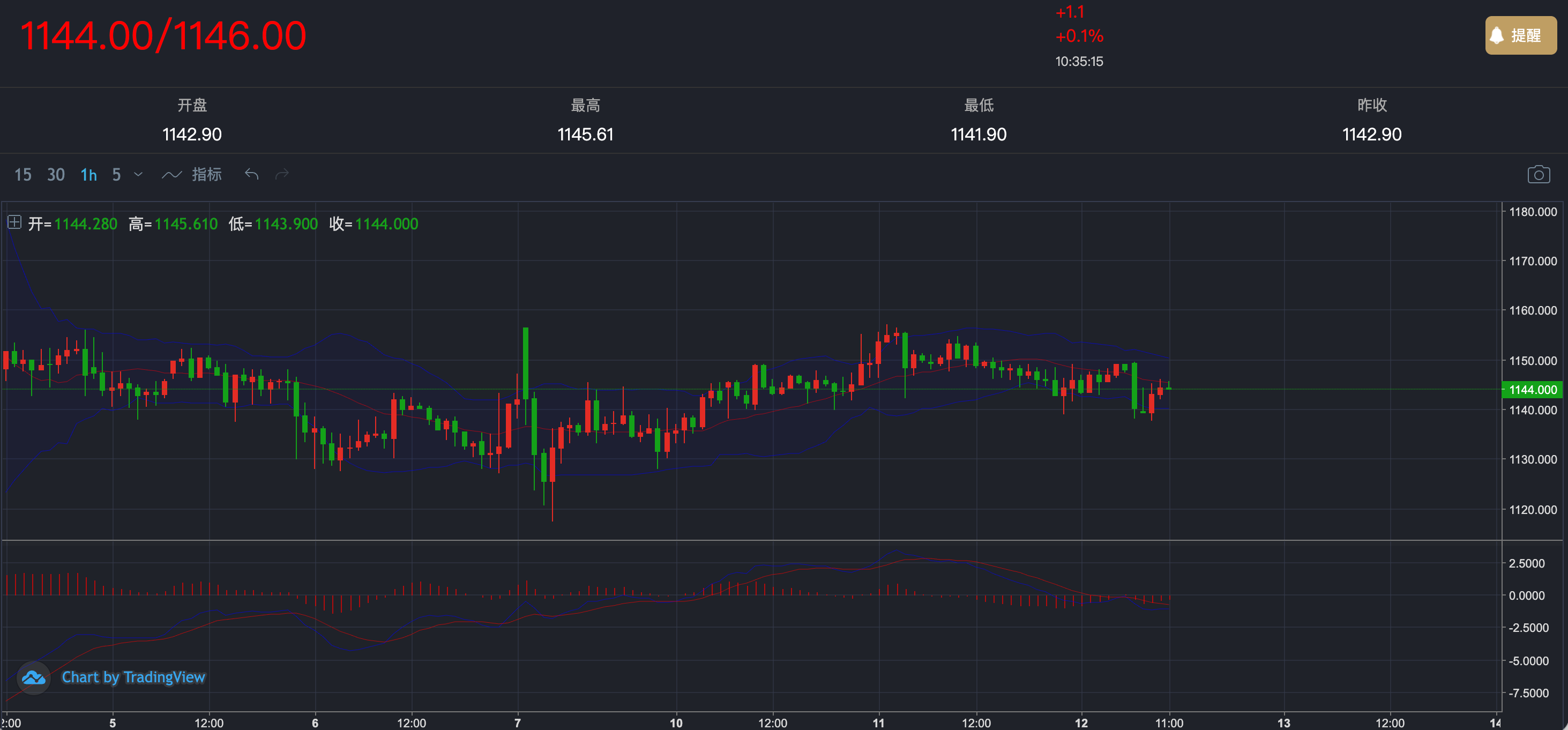 从1小时图来看,融通金整体仍处于区间震荡结构。此前价格在1130一线企稳后逐步反弹,最高上探至1155附近,但上方抛压明显,随后再次回落,目前价格在1140附近反复整理。