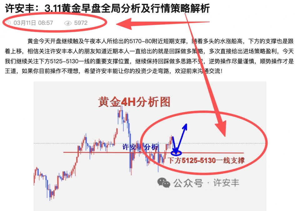 昨日冲高回落形成长上影,多头动能不足,空头亦无持续下探动力。今日核心运行区间看5130—5200一线,下方5125附近为日内强支撑,上方5200-05关口为短期压力位,黄金早间触底反弹,最低触及5125一线,关注我的朋友都知道下方5125-30一线是本人给出的支撑位置,回踩这里是要多单进场的,早盘虽然触及此位置探底回升,但是今天的走势亚盘将处于震荡,近期因为特朗普对战争言论的反复、ETF加仓减仓的反复,加上美元涨跌反复,导致黄金走势维持区间震荡。美国和伊朗局势还不明朗,何时结束也不确定,近期整个金融市场波动都非常剧烈,但是每天的机会非常多,我们只抓我们看的懂的行情。我们继续关注下方5125-5130一线的重要支撑位置,继续保持回踩做多思路不变。如果你目前操作不理想,希望许安丰能让你的投资少走弯路,欢迎前来沟通交流!