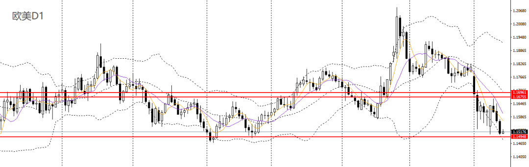 欧美日线呈三只乌鸦,逼近前低,4小时徘徊于1.15关口附近,短线趋势极为疲软,空单仍可持有,如彻底失守1.15,可看空至1.1460一线。