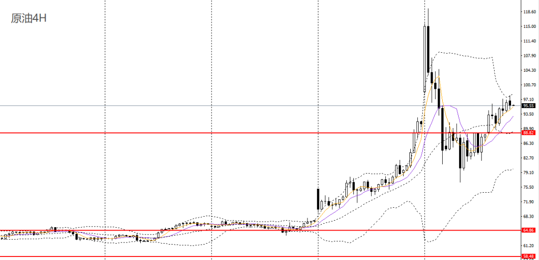 美原油昨日强势拉涨,日线RSI到达超买区,88-90成为下方关键支撑带,如维稳于上方可延续低多思路,短线有望冲击100关口。