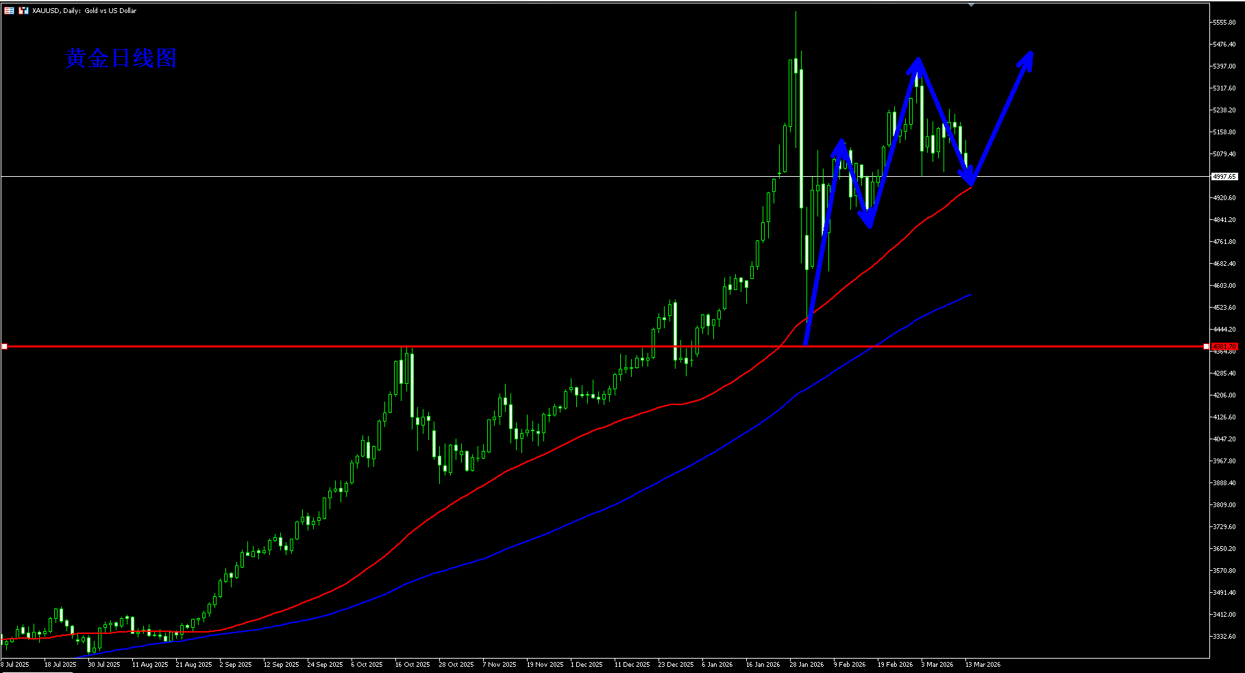 黄金4950多,保护4920,目标5150-5200;