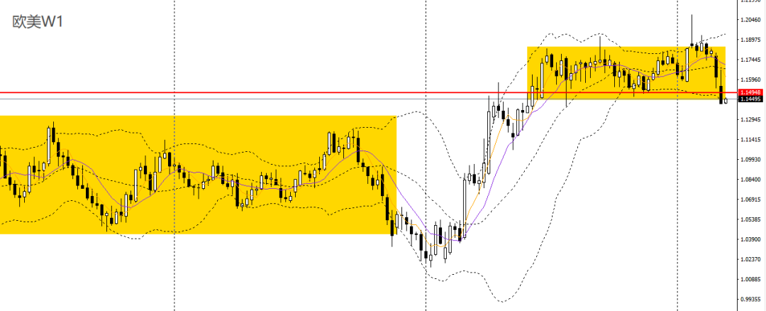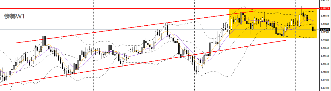 欧美上周冲高回落,创下7个月新低,逼近周线震荡区间下沿。周五持续下挫,下破日线布林下轨,日线RSI到达超卖区,4小时逼近1.14关口,如于1.1460一线承压可继续进空。