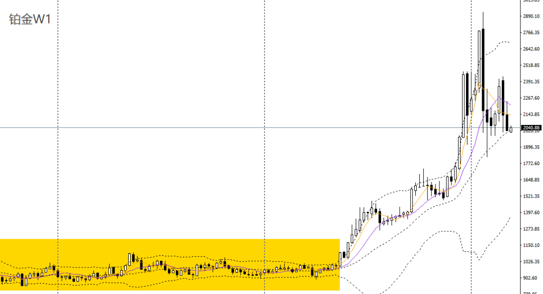 铂金上周大幅回落,回踩日线布林中轨,RSI跌至50左右,波段预计将维持高位震荡。周五阴跌,逼近关键支撑2000,有望打破此前区间震荡格局,空单可继续持有,如彻底下破2000,可下看至1970-1980。
