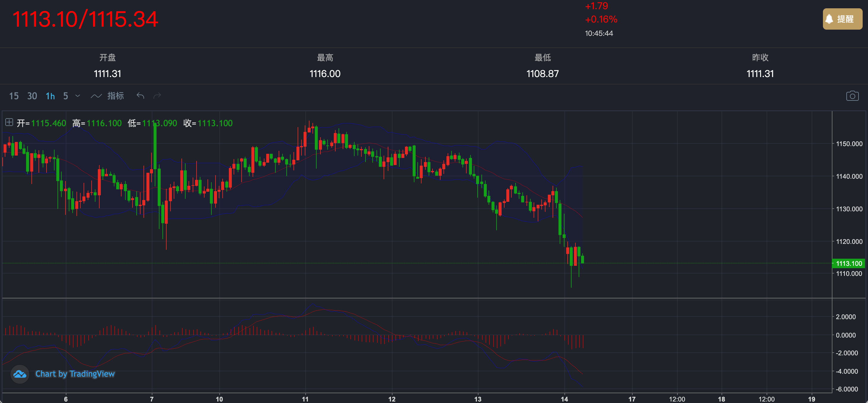 从1小时结构来看,融通金此前在 1145–1150 区域形成阶段性高点后持续回落,近期高点不断下移,整体走势已经转入明显的 下行趋势。价格在跌破 1130 关键支撑后加速下探,最低触及 1110附近,随后出现技术性反弹,目前在 1113一线 震荡整理。
