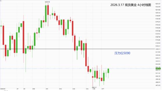 现货黄金:建议偏空操作,空单参考价位5040,止损位5090,获利目标4965附近。
