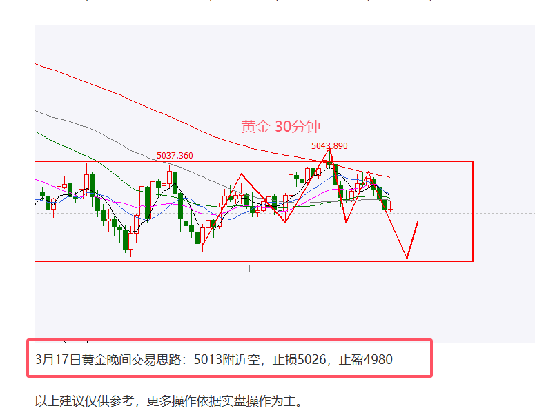 3月18日黄金短线交易:5038附近空,止损5051,止盈500