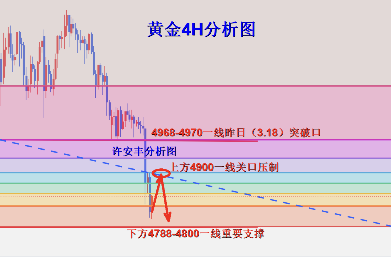 许安丰:3.19黄金日内操作策略,反弹关注4900一线压力